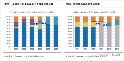 以应用材料的过程工艺控制(PDC)部门发展历程为例。并购在应用材料的过程工艺控制设备部门的搭建过程中起到了至关重要的作用,但后期,研发则发展了并购技术的可延展性,成为应用材料不断推出适应先进工艺的检测设备的主要手段。1996年,应用材料分别以1.75亿和1.1亿美元的现金收购了以色列的Opal和Orbot两家公司,后两者分别为用于缺陷检测的扫描电子显微镜的领先供应商和光罩检测与有图案晶圆检测系统的领先供应商,并在这两家公司的运营基础上设立了PDC部门,业务集中在以色列。短期维度上,应用材料通过收购直接获得了对应细分领域的市场份额,但在长期维度上,应用材料的过程工艺控制设备至今仍然不断更新换代,部分产品已经更新到第7-8代,并且依然具有较强的竞争能力,2015和2016年的市场占有率份额相对1997年刚并购后有明显提升,体现出其研发提供的可延展性和竞争能力。